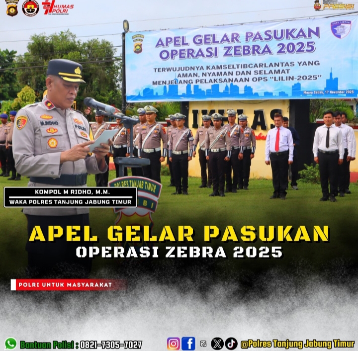 Polres Tanjabtim Gelar Apel Pasukan Operasi Zebra Siginjai 2025″Siap Wujudkan Kamseltibcarlantas ,Aman,Nyaman Dan Selamat”