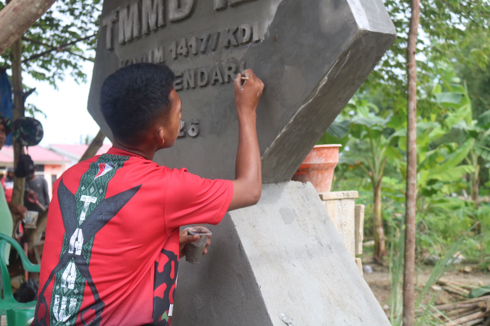 ​Proses pengerjaan tugu yang mencantumkan identitas TMMD ke-127 tahun 2026 ini kini memasuki tahap perapian relief dan detail tulisan.