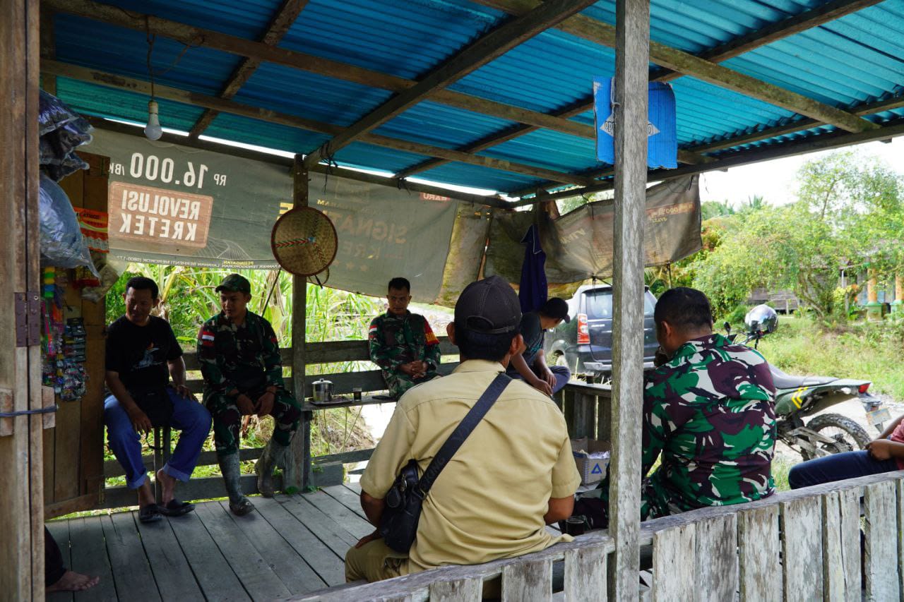 Sambas – Komandan Satuan Tugas (Dansatgas) TMMD Ke-126 Kodim 1208/Sambas meluangkan waktu untuk berkomunikasi sosial (Komsos) bersama Kepala Desa Ratu Sepudak (Muhkart) di sebuah warung sembako milik warga setempat.