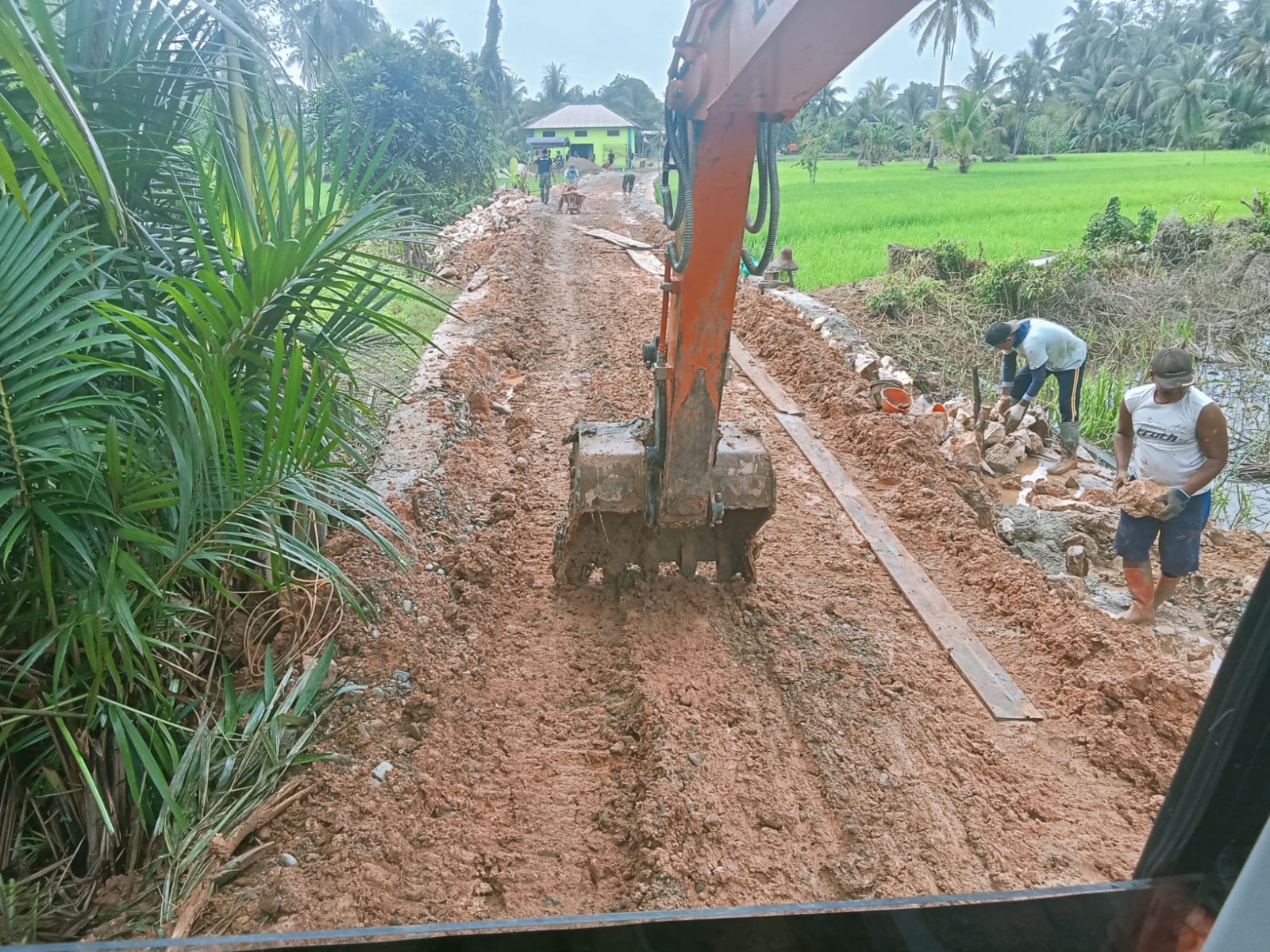 Di tengah pelaksanaan ibadah puasa Ramadan, alat berat tetap dioperasikan secara optimal untuk membantu proses pembentukan badan jalan serta pengerjaan siring (saluran drainase) di sisi kanan dan kiri jalan. Dukungan alat berat ini menjadi faktor penting dalam mempercepat tahapan pekerjaan yang membutuhkan tenaga dan waktu lebih besar.