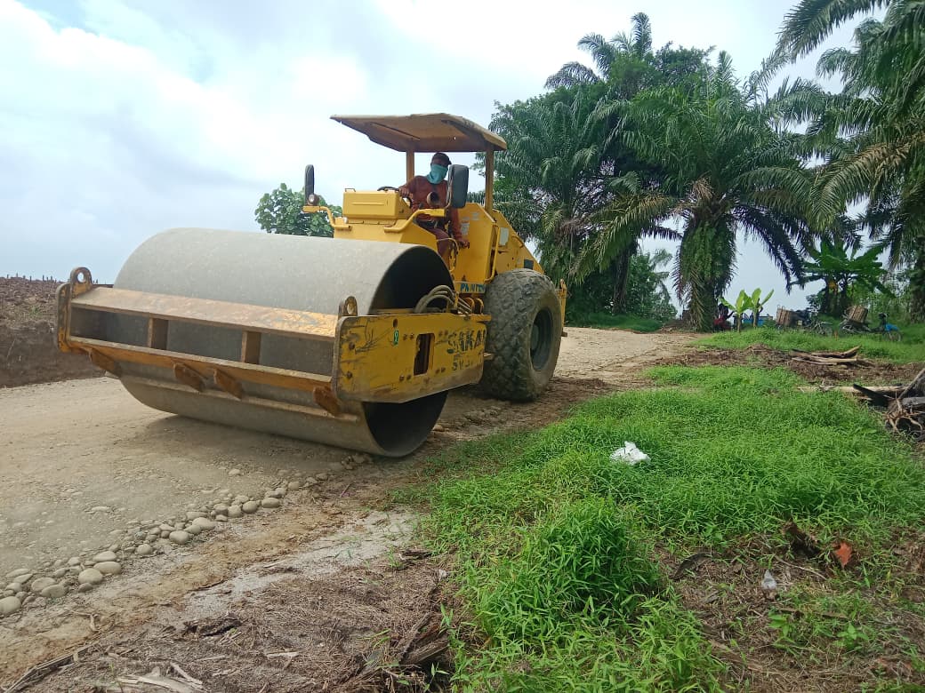 Satgas TMMD menggunakan alat berat roller untuk memadatkan permukaan jalan yang telah diperkeras dengan batu. Proses pemadatan ini sangat vital untuk menjamin kekuatan struktural jalan, mencegah kerusakan dini, dan memastikan jalan memiliki usia pakai yang lama.