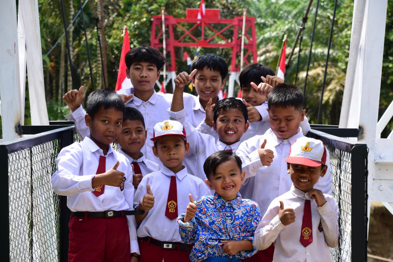 Pagi itu, anak-anak desa yang biasa menghadapi jalan berbahaya dan perjalanan jauh dengan rakit sederhana, tampak begitu ceria dan penuh semangat. Mereka berlari kecil, tertawa riang, dan mengabadikan momen bahagia saat melintasi jembatan baru yang menghubungkan desa mereka ke pusat aktivitas dan pendidikan. Senyum bahagia terpancar dari wajah mereka, menggantikan rasa cemas dan ketakutan yang selama ini mereka alami.
