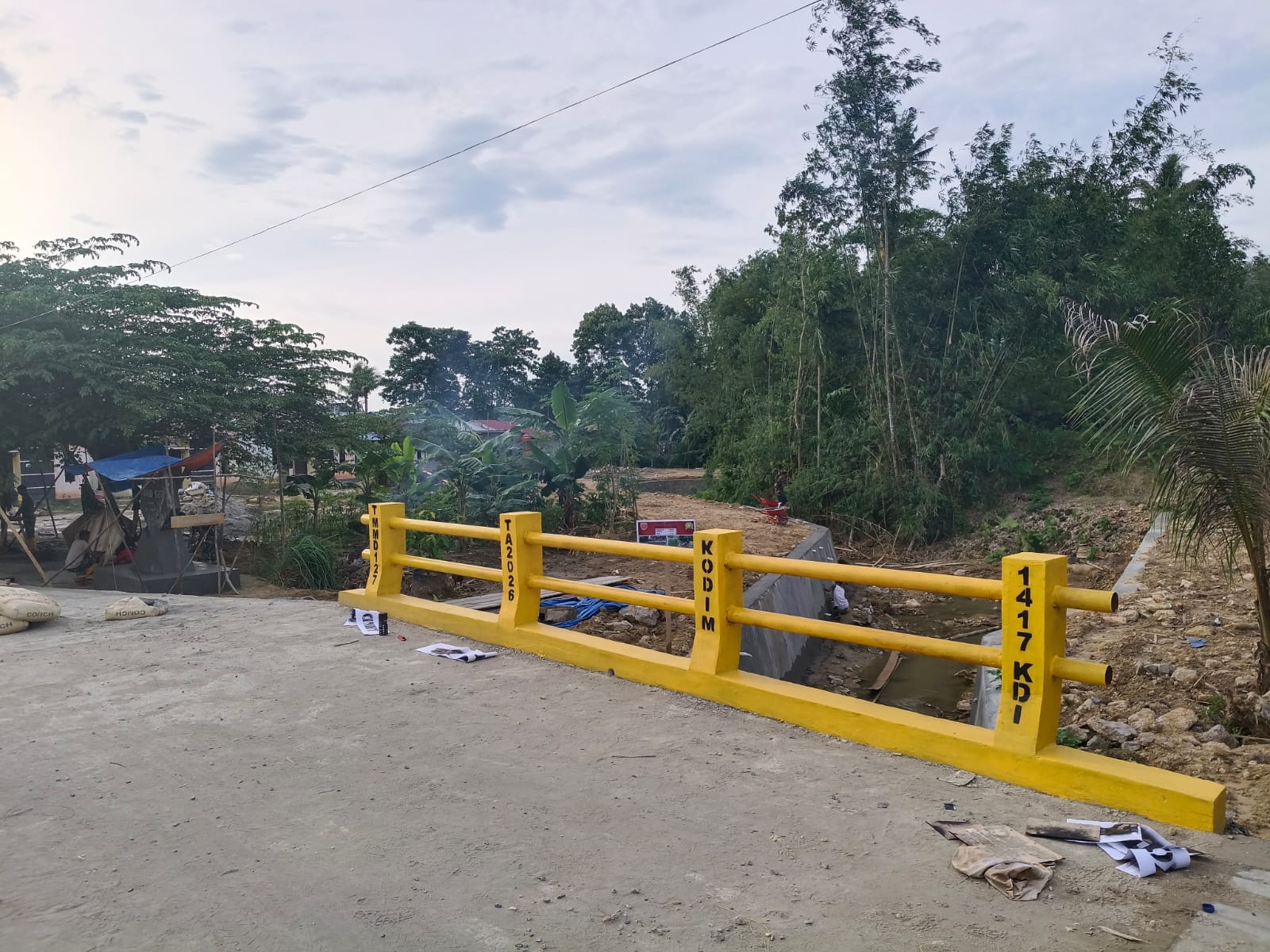 Kendari – Pembangunan jembatan dalam program TNI Manunggal Membangun Desa (TMMD) ke-127 di wilayah Kendari akhirnya resmi rampung dan siap digunakan oleh masyarakat. Infrastruktur yang didominasi warna kuning cerah ini menjadi simbol baru konektivitas antarwilayah yang sebelumnya sulit dijangkau. Rabu (11/3).
