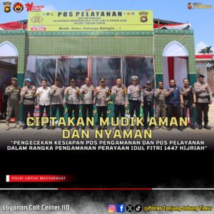 Pengecekan tersebut merupakan rangkaian persiapan matang kepolisian di wilayah hukum Polres Tanjab Timur dalam menghadapi situasi yang mungkin terjadi selama musim mudik lebaran dan arus balik, Kesiapan yang optimal dari Pos Pam dan Pos Yan diharapkan dapat memberikan rasa aman dan nyaman bagi masyarakat yang melakukan perjalanan.