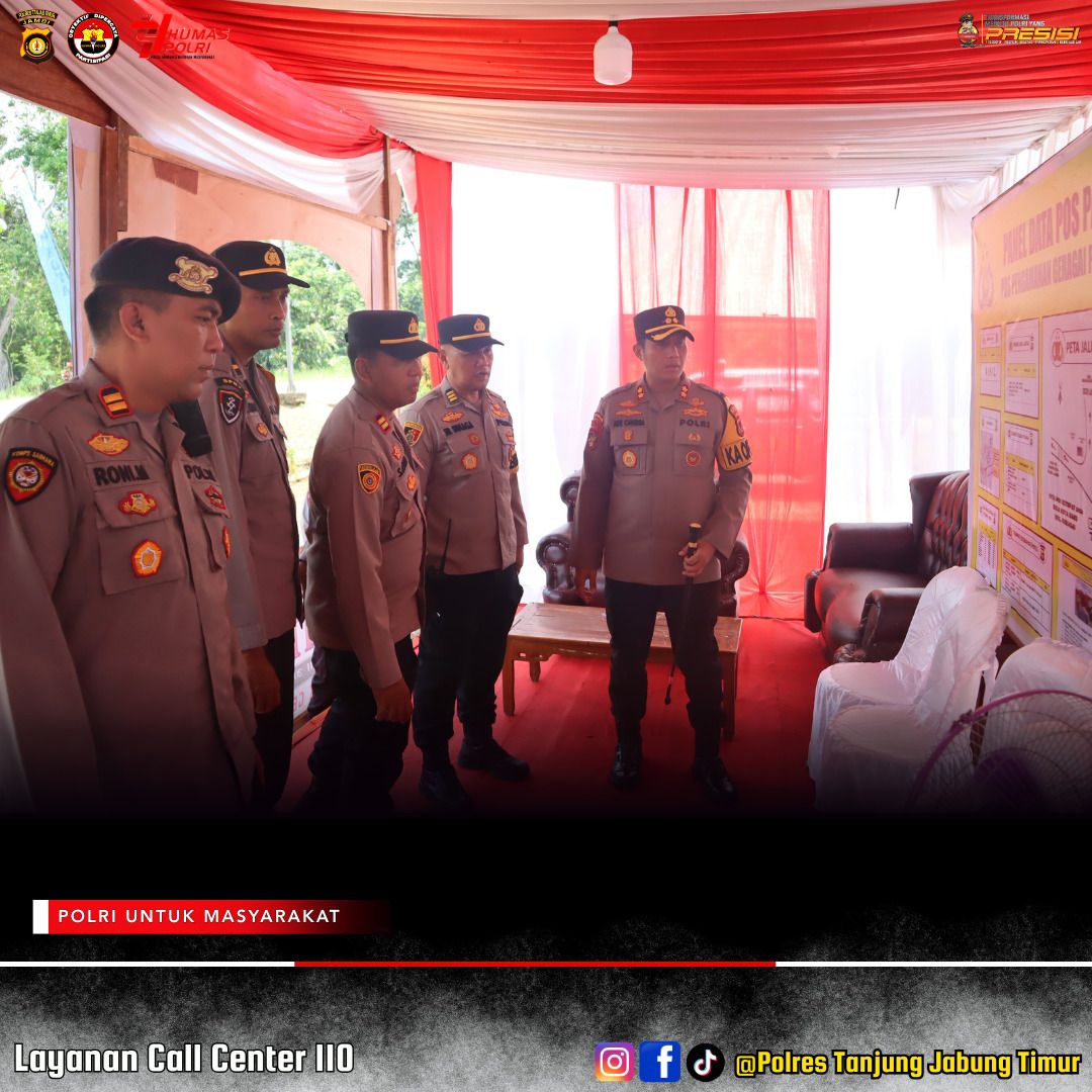 Kapolres meninjau langsung kesiapan personel yang ditugaskan dan mengecek sarana serta prasarana yang ditempatkan di Pos Pam Geragai dan Pos Yan Muara Sabak Barat demi mendukungnya pelaksanaan tugas personil sehingga kegiatan pengamanan berjalan lancar dan aman.