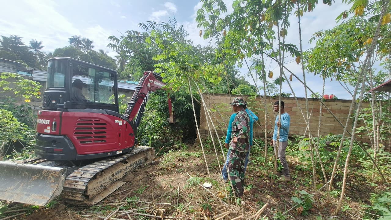 Kendari – Memasuki tahapan krusial program Tentara Manunggal Membangun Desa (TMMD) ke-127, Kodim 1417/Kendari mulai mengerahkan alat berat untuk pengerjaan sasaran fisik di Kelurahan Anggoeya, Kecamatan Nambo, Kota Kendari, Selasa (10/2).