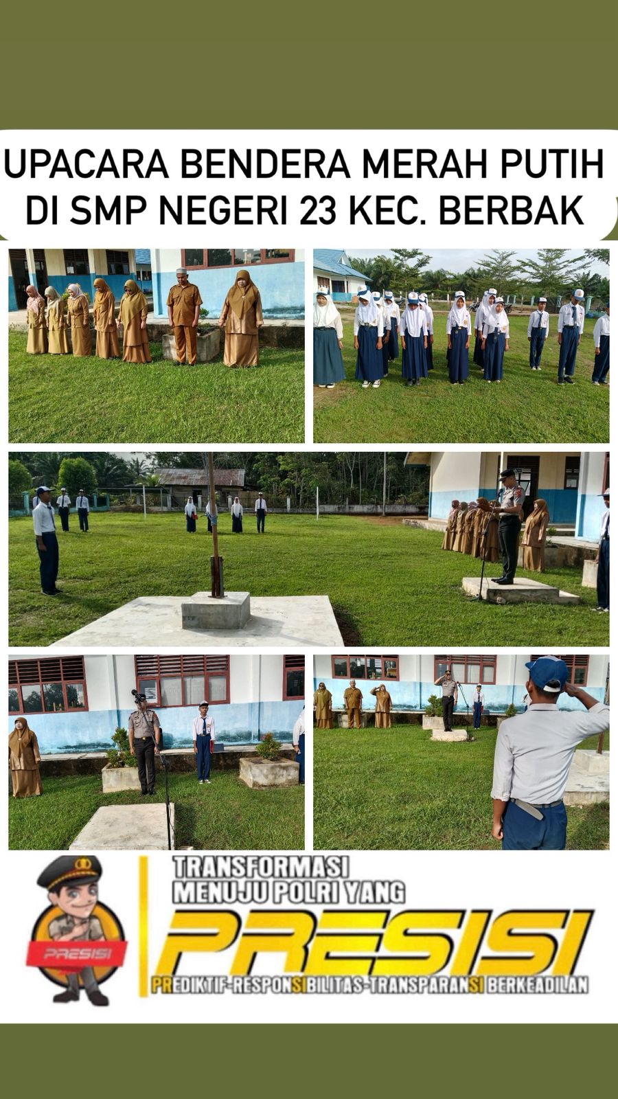 Upacara yang berlangsung serentak di halaman sekolah SMP Negeri 24 Dendang, SMP Negeri 23 Berbak dan SMA Negeri 9 Tanjab Timur (Kuala Jambi) tersebut dipimpin langsung oleh masing masing Kapolsek, diantaranya SMP Negeri 24 Dendang selaku Irup Iptu Sunarto, SMP Negeri 23 Berbak selaku Irup Iptu Deden Ariandi. S.H dan SMA Negeri 9 Tanjab Timur selaku Irup Ipda Ekka Kasumayadi S.H., M.H serta diikuti oleh Kepala Sekolah, staf dewan guru juga seluruh siswa dan siswi masing – masing sekolah. Suasana berlangsung dengan penuh khidmat dan tertib. Pesan Kamtibmas dan Pembentukan Moral.