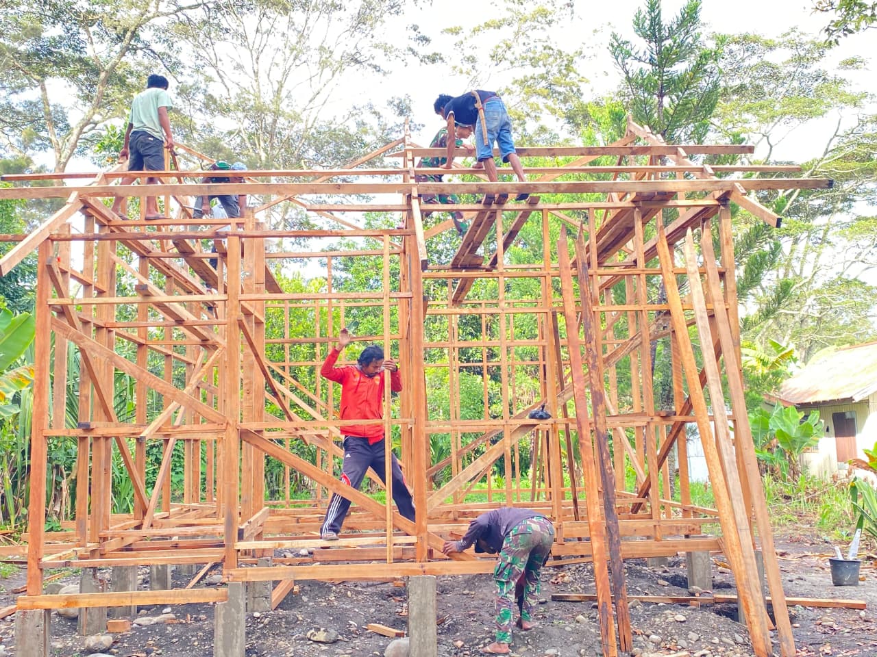Sasaran Fisik TMMD ke-126 Kodim 1702/Jayawijaya Rumah Sehat Telah Mencapai Progres 48% Pengerjaan