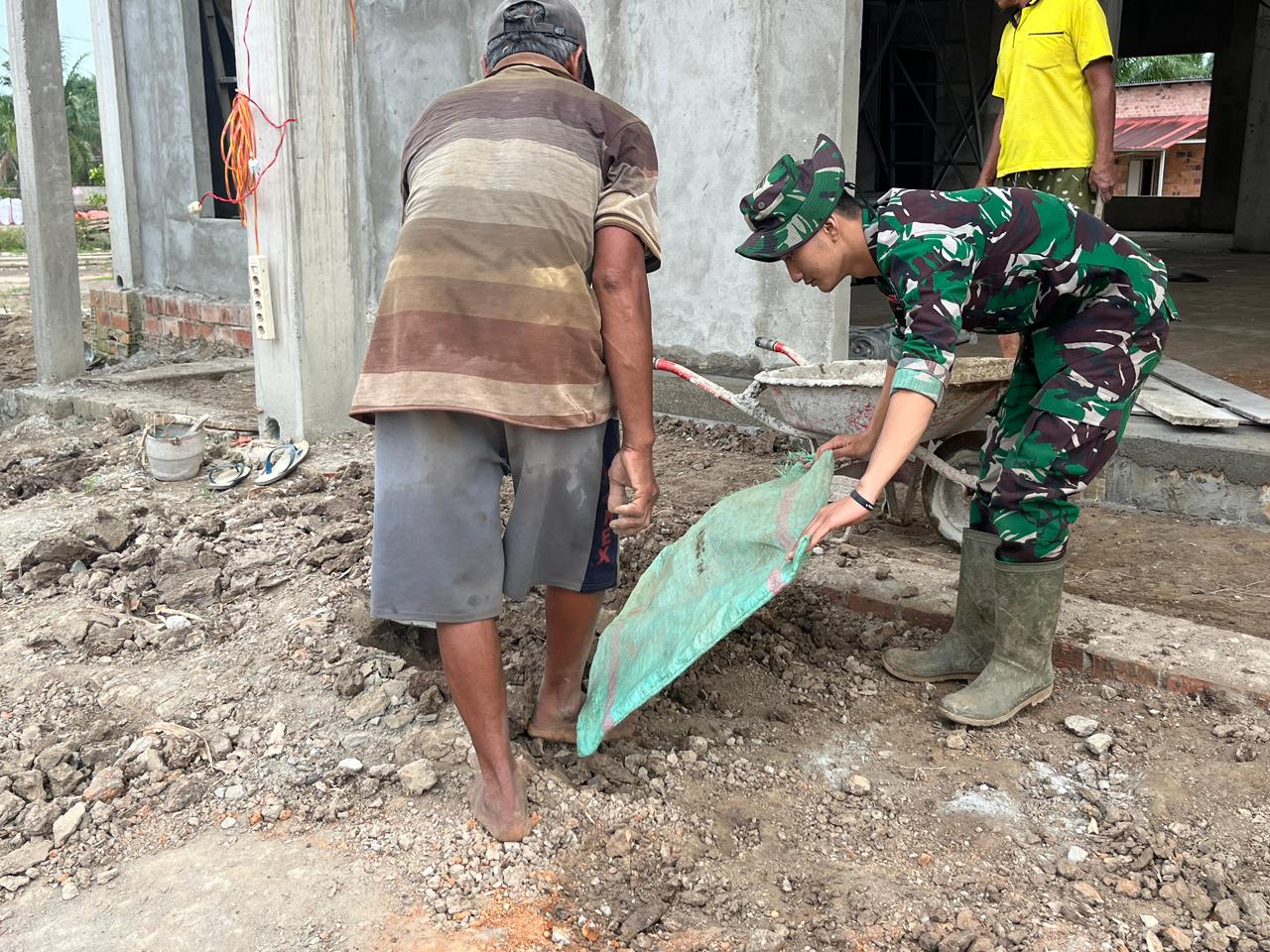 Dengan menggunakan alat berat dan tenaga manual, proses penimbunan tanah berlangsung dengan efisien dan terorganisir. Kebersamaan ini tidak hanya mempercepat progres pembangunan, tetapi juga mempererat tali silaturahmi antara TNI dan masyarakat, sekaligus menumbuhkan rasa memiliki terhadap fasilitas umum yang sedang dibangun.