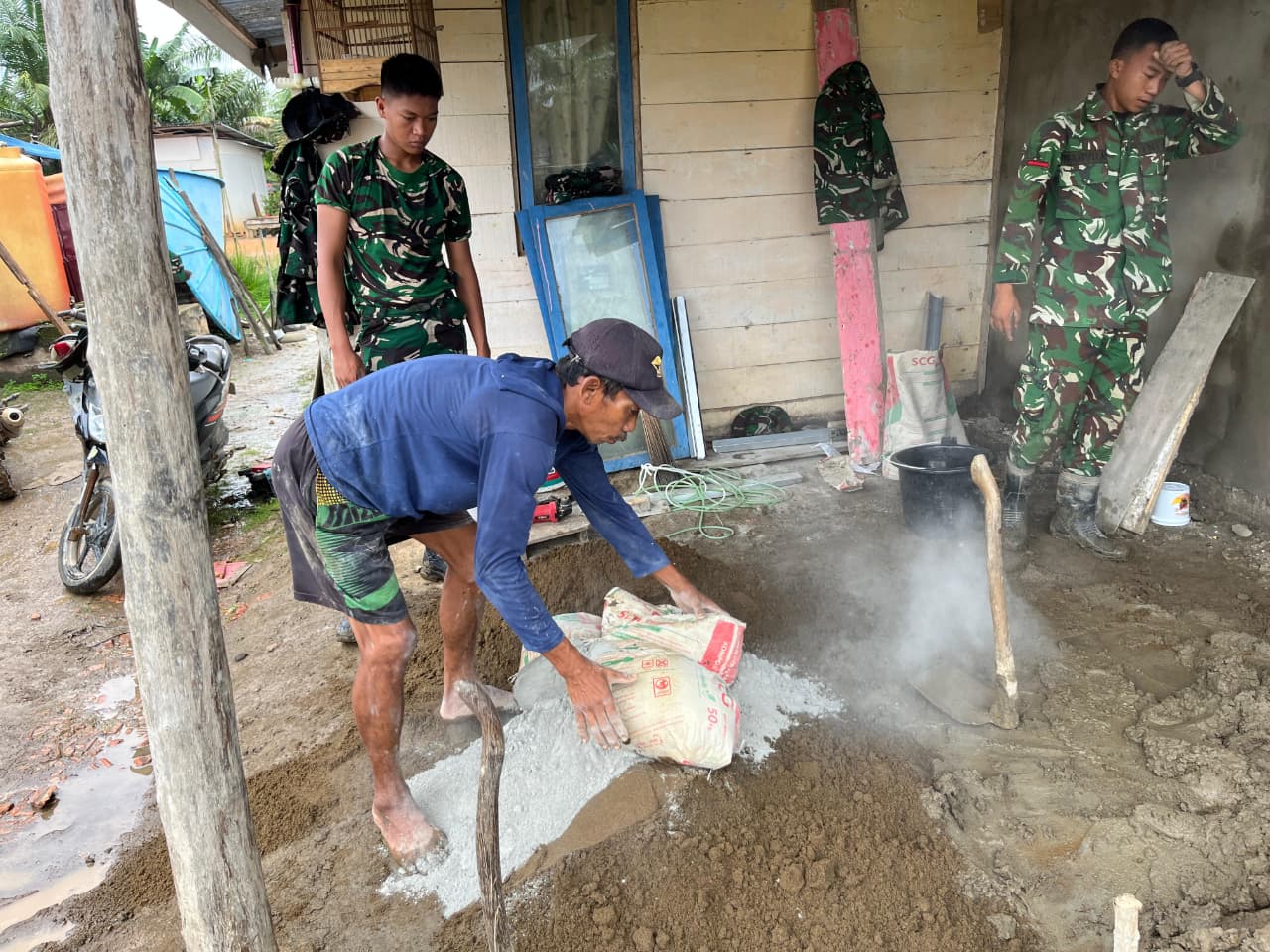 Satgas TMMD 127 Kodim 0430/Banyuasin Kejar Target, Pasang Keramik Lantai untuk Rumah Layak Hunian Bapak Paiman
