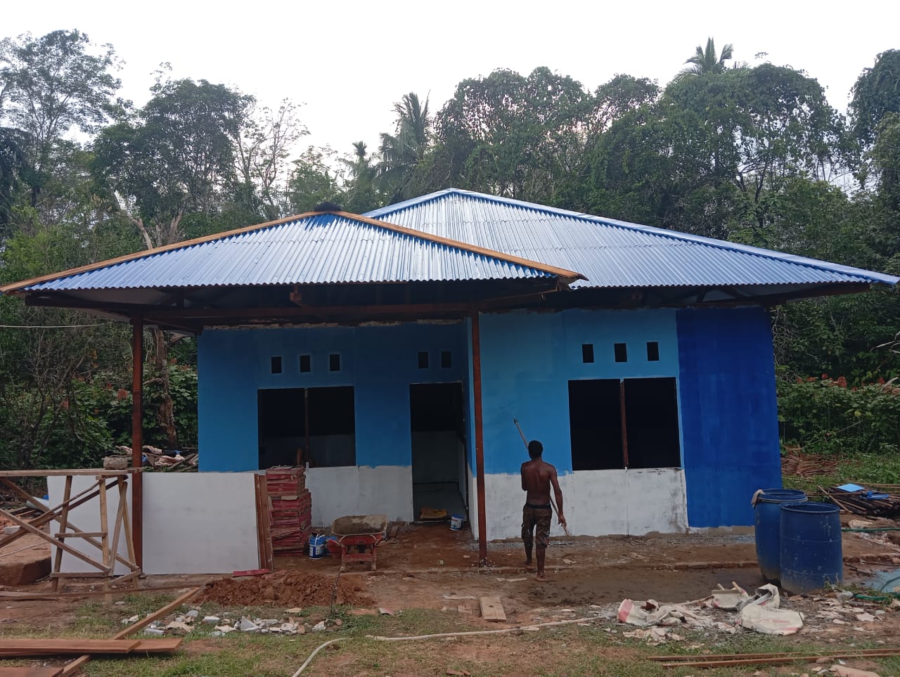 Material-material bangunan seperti keramik dan plafon diangkut dari dermaga ke lokasi secara gotong royong oleh masyarakat dan personel Satgas. Pemasangan keramik dilakukan dengan rapi agar lantai rumah menjadi lebih bersih dan nyaman. Sementara itu, pemasangan plafon dan pengecatan dinding bertujuan meningkatkan estetika dan ketahanan bangunan terhadap cuaca.