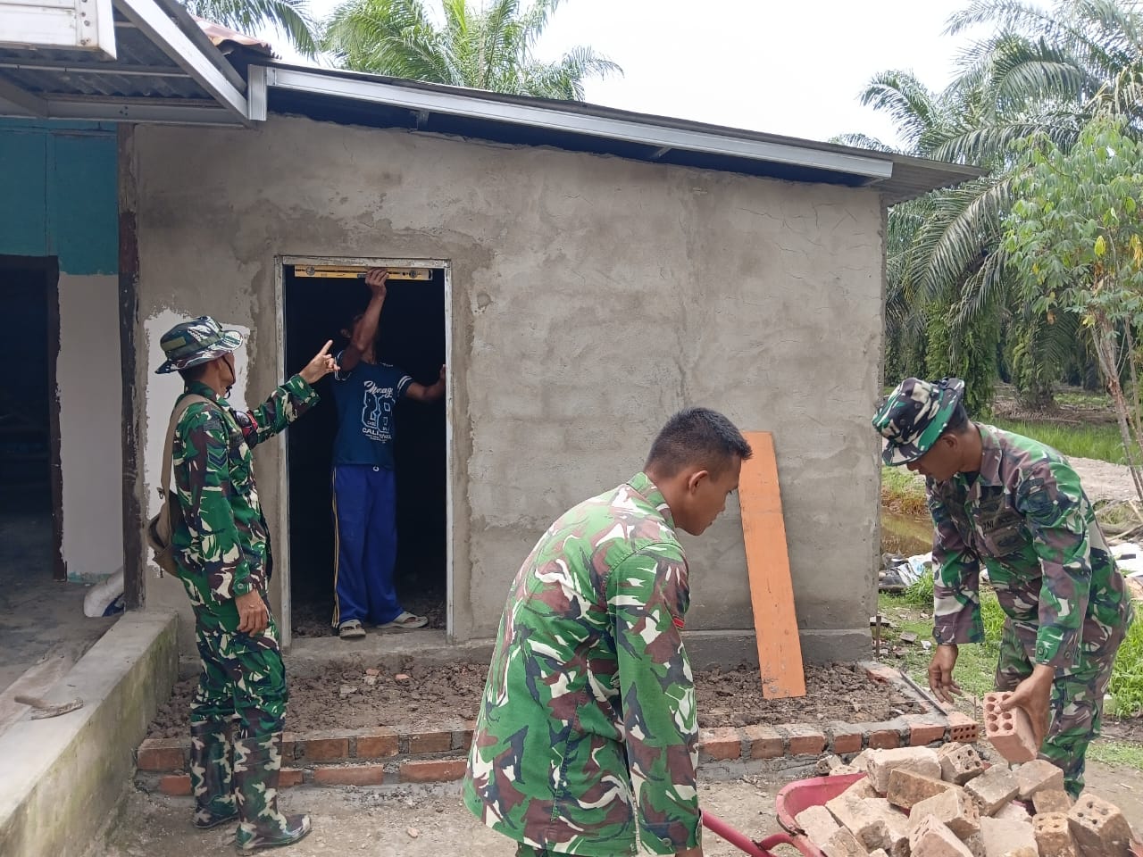 BANYUASIN– Satuan Tugas (Satgas) TMMD ke-127 dari Kodim 0430/Banyuasin terus mempercepat pengerjaan Rumah Tidak Layak Huni (RTLH) milik Ibu Suwarti di jalur 1, Dusun 1, Desa Wonosari. Hingga saat ini, proses pembangunan rumah tersebut sudah memasuki tahap pemasangan lantai.