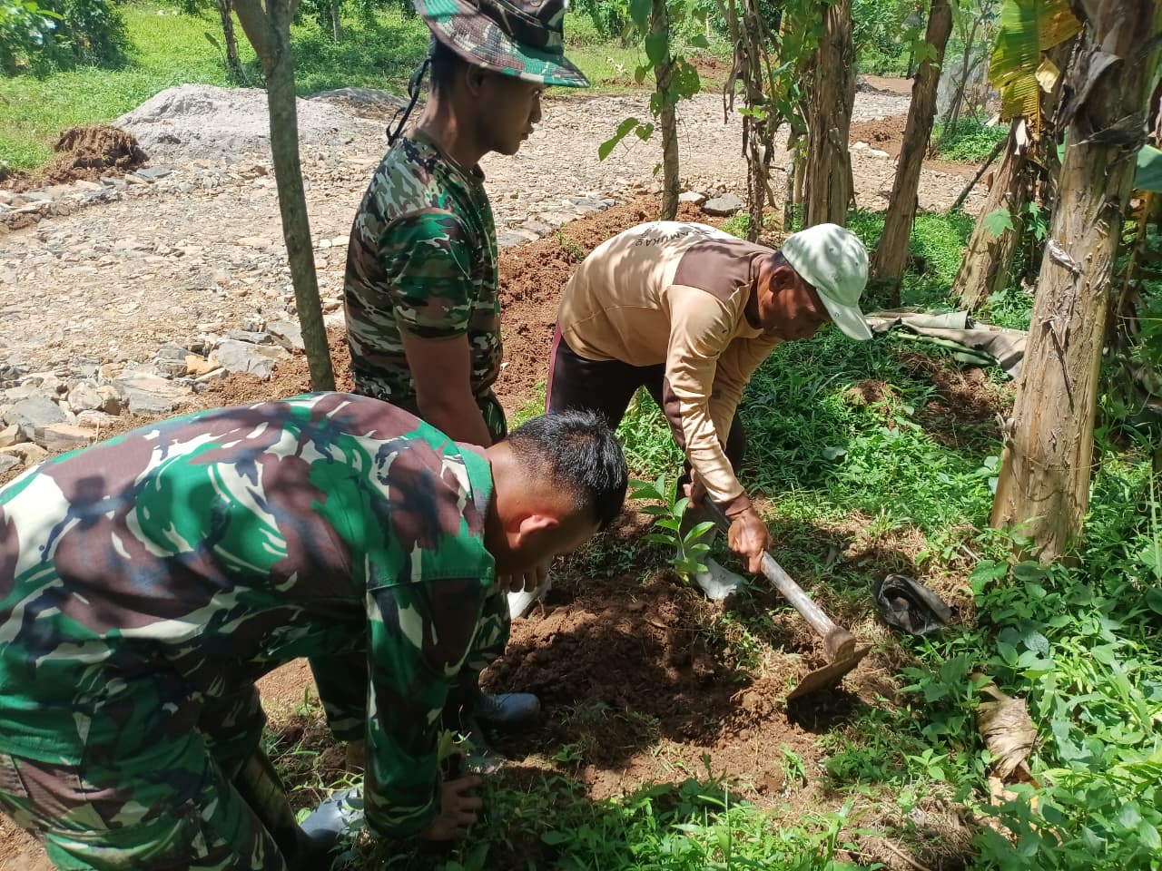 Dalam suasana penuh keakraban, terlihat para prajurit TNI berbasah-basah di dalam air keruh, memegang kayu tiang dengan tenaga penuh agar tetap kokoh. Di sisi lain, alat berat juga dikerahkan untuk membantu mempercepat pekerjaan yang membutuhkan tenaga ekstra.