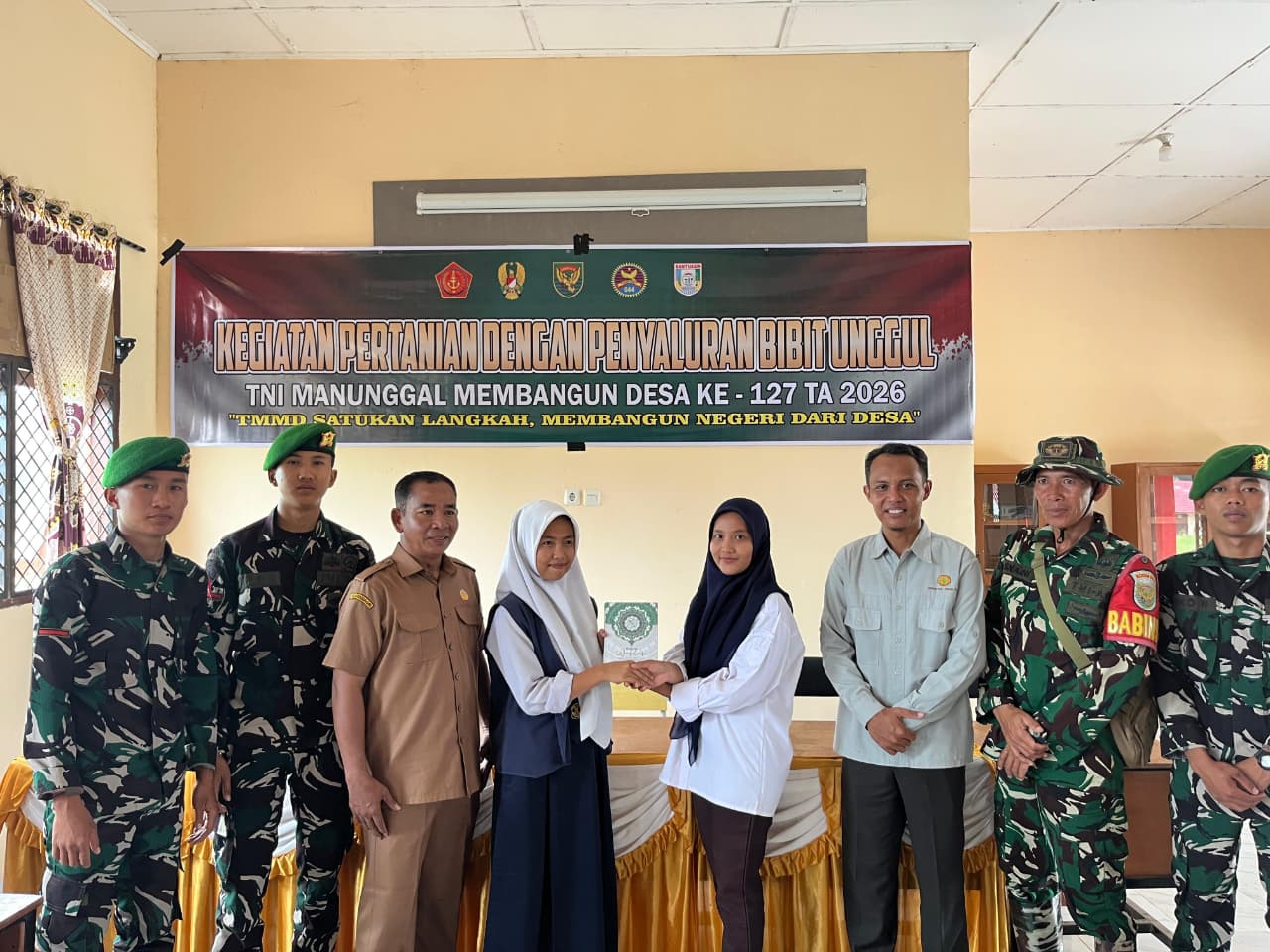Banyuasin– Anggota Satgas TMMD ke-127 dari Kodim 0430/Banyuasin melaksanakan kegiatan pembagian Al-Qur’an kepada masyarakat Desa Wonosari, Kecamatan Pulau Rimau, Kabupaten Banyuasin. Kegiatan ini merupakan bagian dari sasaran nonfisik program TMMD yang bertujuan memperkuat pembinaan mental dan spiritual masyarakat desa.