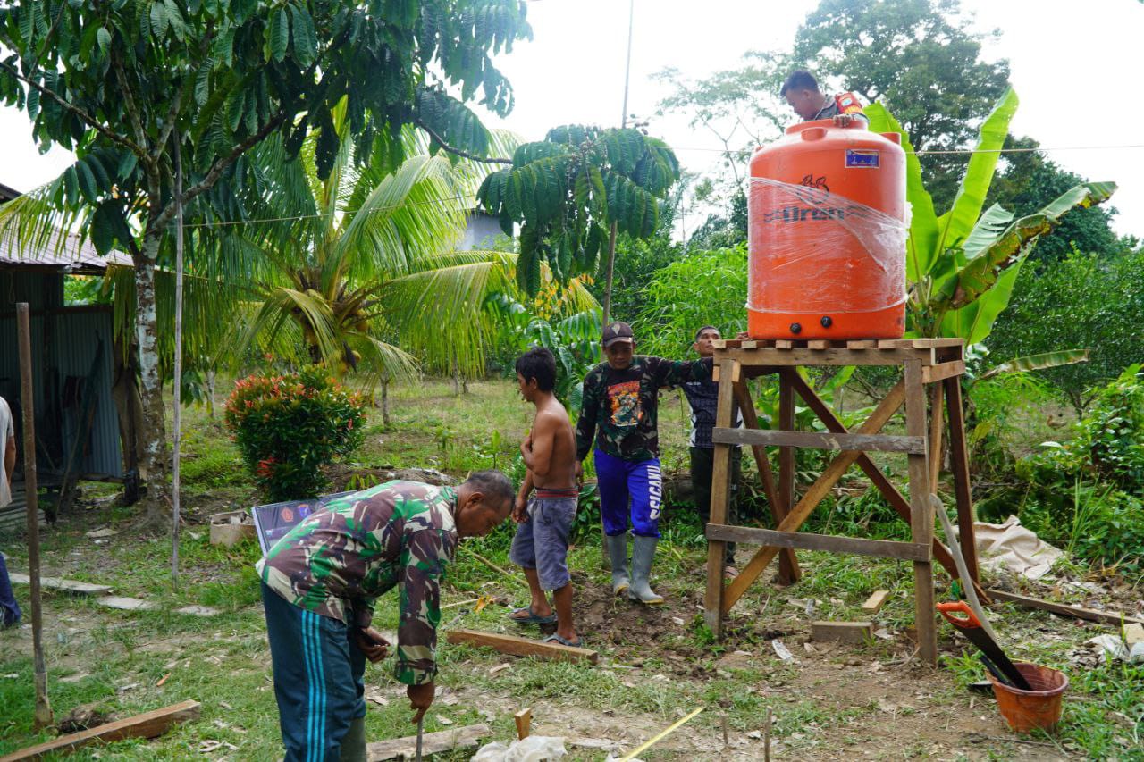 Sambas – Satgas TNI Manunggal Membangun Desa (TMMD) Reguler ke-126 Kodim 1208/Sambas terus melanjutkan pekerjaan fisik di Desa Ratu Sepudak, Kecamatan Galing. Kali ini, anggota Satgas bersama warga memasang penampungan air (tandon/pinguin) yang bersumber dari sumur bor hasil program TMMD.