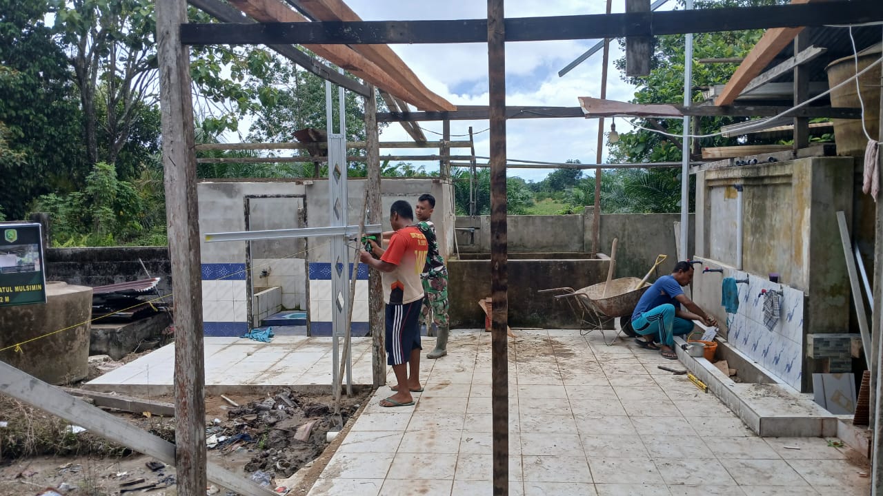 Pekerjaan dilakukan dengan penuh semangat dan gotong royong antara personel Satgas TMMD dan warga sekitar. Pemasangan rangka baja ringan ini merupakan tahap lanjutan dari pembangunan MCK yang sebelumnya telah memasuki tahap pemasangan dinding dan atap.