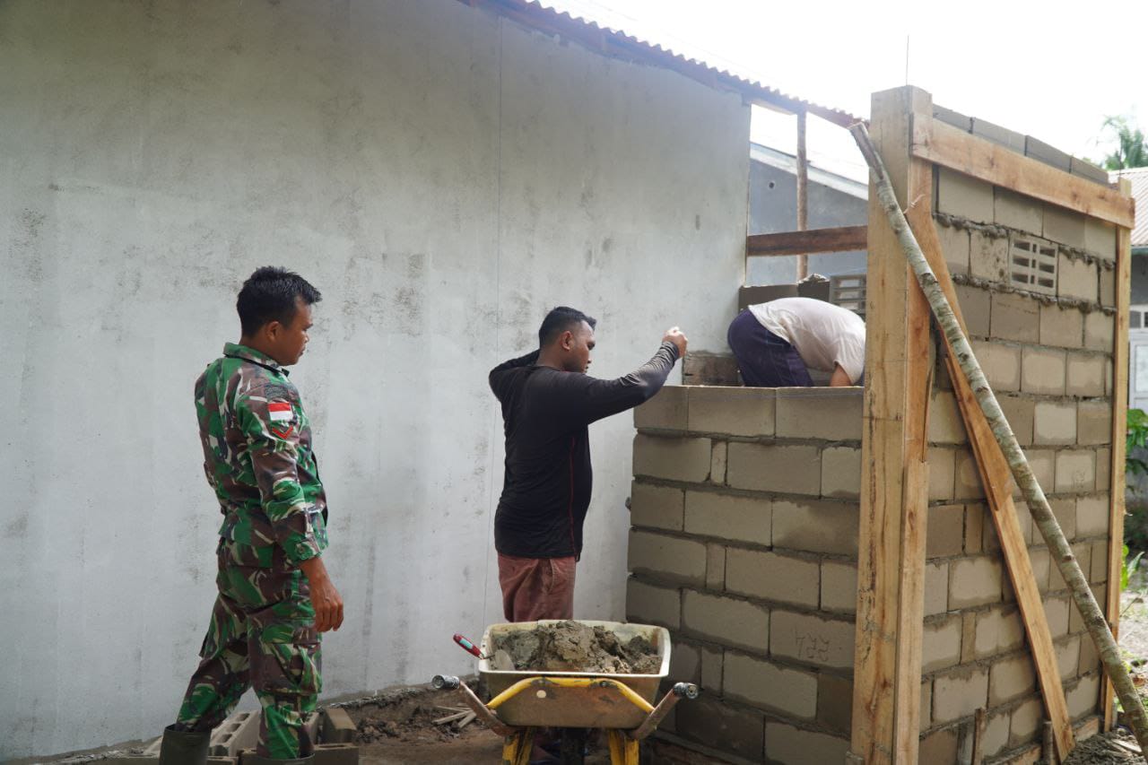 Kegiatan tersebut dilakukan secara gotong royong dengan penuh semangat dan kekompakan antara TNI dan masyarakat. Pemasangan batako ini merupakan tahap penting dalam penyelesaian pembangunan MCK yang nantinya akan digunakan oleh warga penerima manfaat.