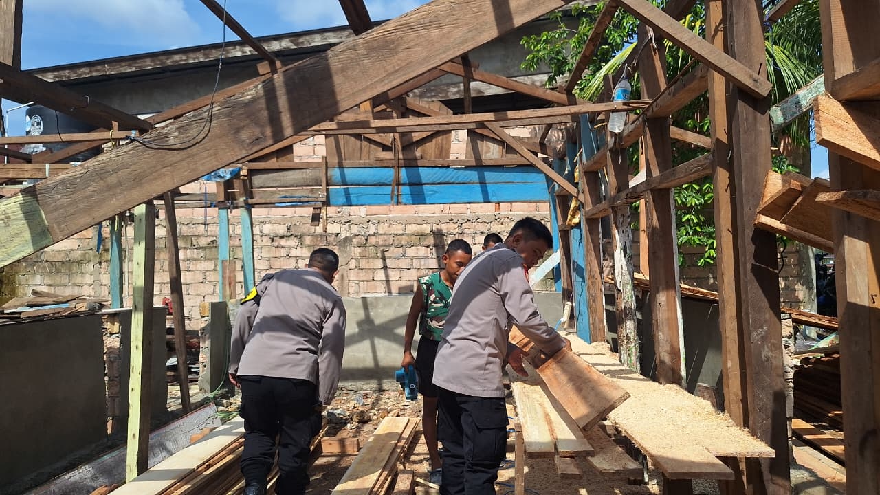 Tanpa sekat, aparat berseragam loreng dan cokelat ini menunjukkan sinergitas tanpa batas dalam mempercepat pembangunan rumah layak huni (RTLH).