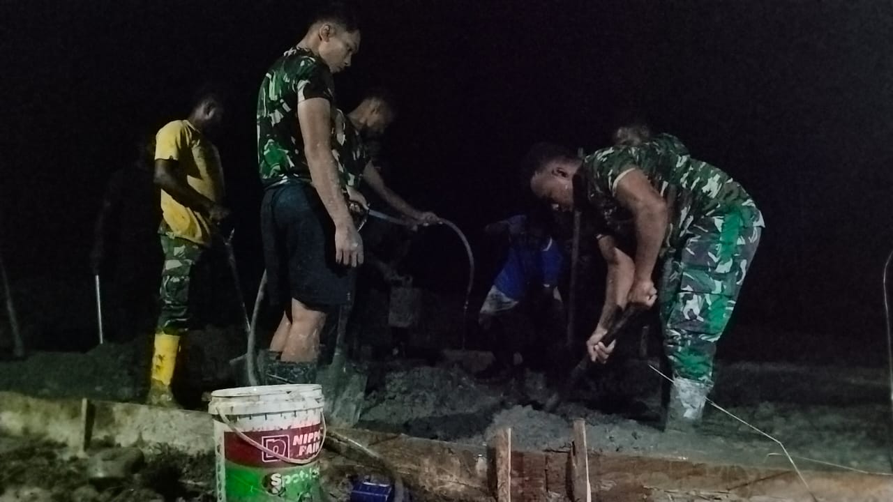 Walaupun kondisi pencahayaan terbatas dan cuaca tidak selalu bersahabat, hal itu tidak menyurutkan semangat personel Satgas dan warga. Mereka saling bahu membahu, bergotong royong mengangkut material dan menghaluskan permukaan jalan agar hasilnya maksimal. Suasana kerja di malam hari justru menambah kekompakan dan kebersamaan antara TNI dan masyarakat.
