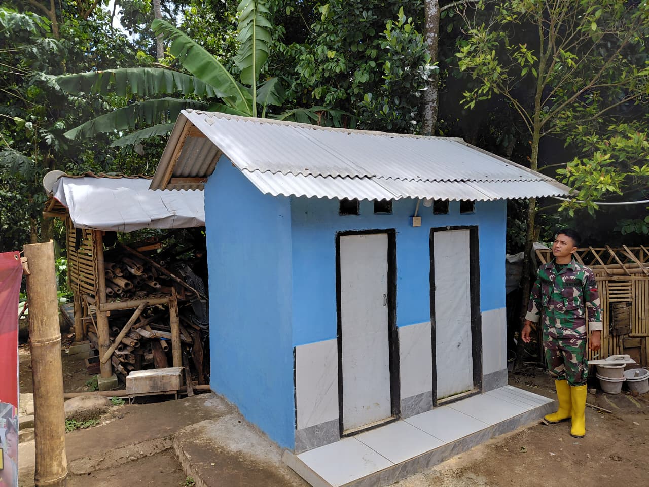 Dalam foto terlihat salah satu anggota Satgas TMMD sedang melakukan pengecekan hasil akhir bangunan MCK yang telah berdiri kokoh dan rapi. Pengecekan ini dilakukan sebagai bagian dari proses pengawasan kualitas bangunan agar hasil kerja dapat dimanfaatkan dengan baik oleh masyarakat.