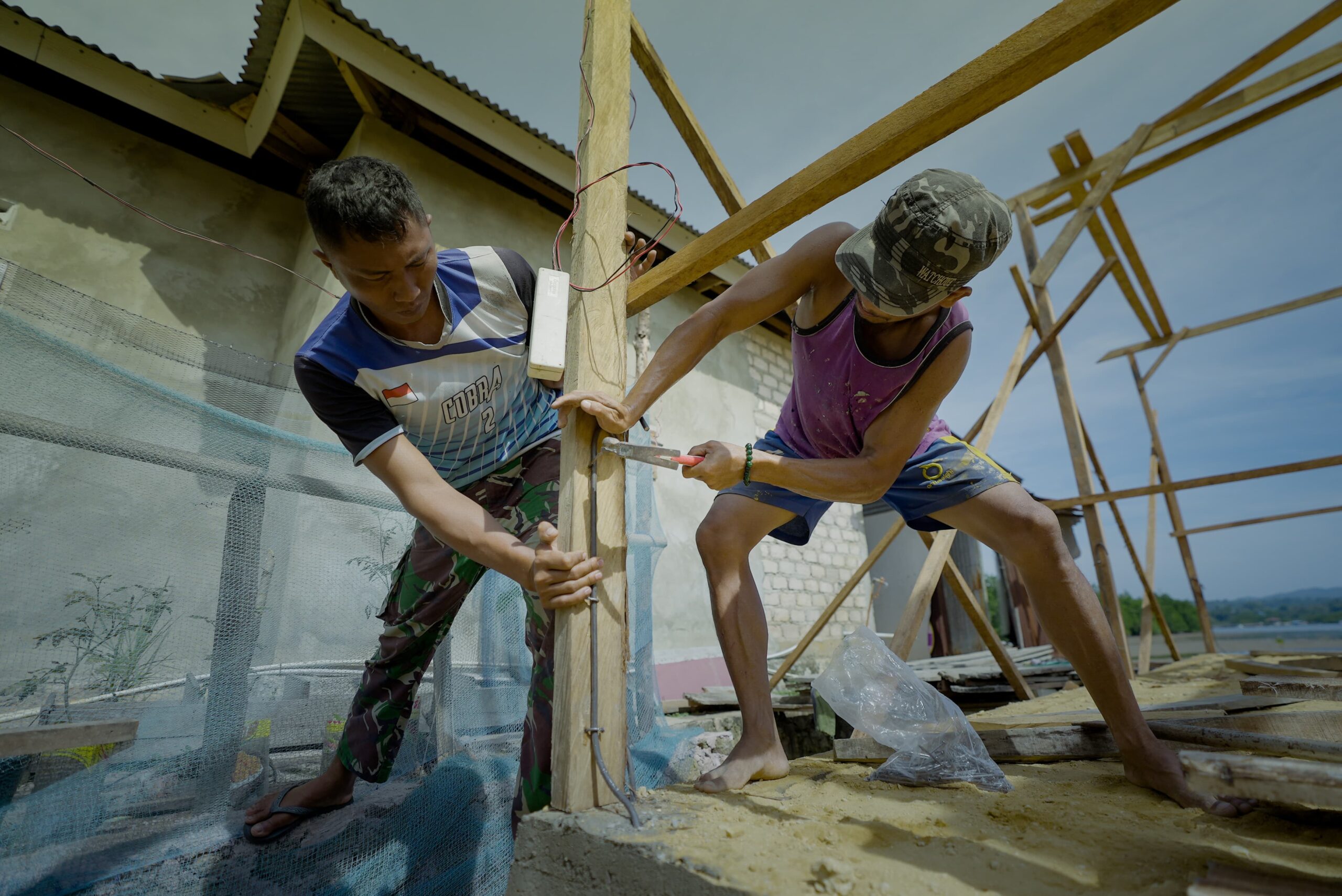 Melalui semangat gotong royong antara personel TNI dan masyarakat setempat, gubuk-gubuk kayu yang sebelumnya rapuh dan tidak sehat kini bertransformasi menjadi hunian permanen yang layak dan nyaman.