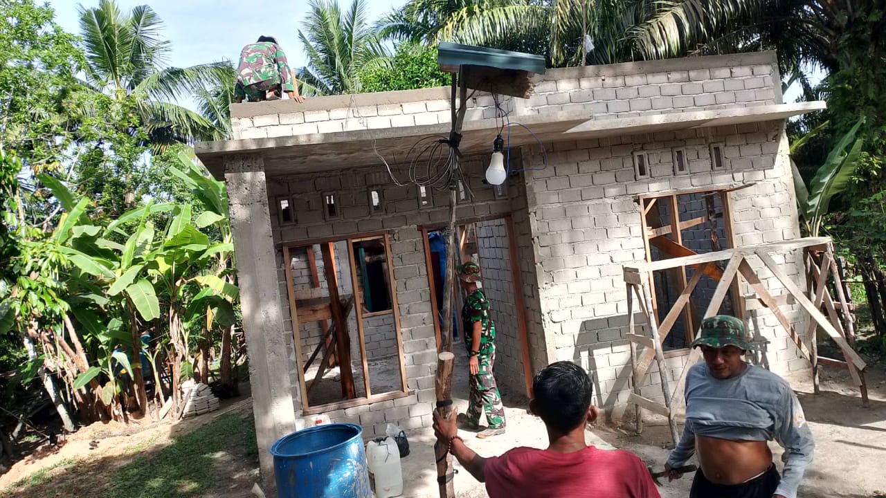 TMMD ke-127 Kodim 0302/Inhu Terus Lanjutkan Pembangunan RLH Bapak Masrizal, Tahap Plester Dinding Terus Dikebut Demi Hunian yang Layak