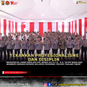 TANJABTIM,Suaradayadigital.com-Wakapolda Jambi Brigjen Pol. Benny Ali, S.I.K., S.H., melaksanakan kegiatan tatap muka sekaligus memberikan arahan kepada seluruh personel Polres Tanjung Jabung Timur pada kegiatan yang berlangsung dengan penuh khidmat dan semangat kebersamaan.